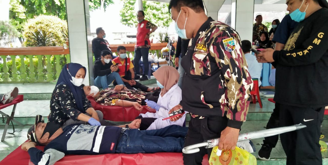 BINJAI, SUMUTPOS.CO – Keluarga besar (KB) FKPPI Binjai menggelar donor darah di Lapangan Merdeka, Minggu (14/3). Pelaksanaan donor darah berjalan lancar dengan tetap mematuhi protokol kesehatan Covid-19.