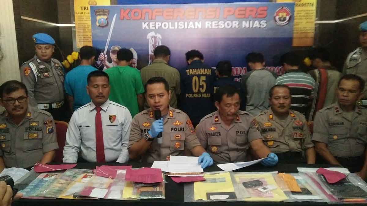 Data ini diungkap Kapolres Nias AKBP Deni Kuriawan, Sik, MH saat temu pers di lobi utama Mapolres Nias, Senin (13/1). Ia didampingi Wakapolres Kompol Yafao Harefa, Kasat Reskrim Iptu Martua Manik serta para Kapolsek Jajaran Polres Nias.