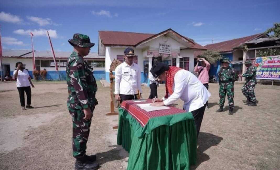 KARO, SUMUTPOS.CO – Bupati Karo Brigjen Pol (Purn) Antonius Ginting, melakukan penandatanganan naskah serah terima Program TMMD ke-125 Tahun Anggaran (TA) 2025. Penandatanganan disertai dengan penyematan tanda peserta dan penyerahan perangkat kerja ini, dilakukan dalam upacara sekaligus membuka TMMD ke-125 TA 2025 di Wilayah Kodim 0205/TK Korem 023/KS Kodam I/BB di Lapangan SD Negeri Tigajumpa, Kecamatan Barusjahe, Kabupaten Karo, Rabu (23/7).