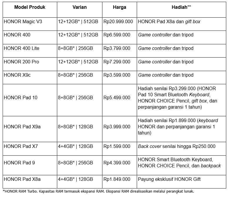 Ada pula CORKCICLE Tumbler bagi 100 pembeli pertama HONOR Pad 10 dan HONOR Pad X9a, serta MYSTERY GIFT untuk 100 pembeli pertama. Tidak hanya itu, pengguna juga dapat menikmati program tukar tambah atau trade in plus dengan cashback hingga Rp400.000 dan berkesempatan memperoleh MyEraspace Voucher hingga Rp600.000.