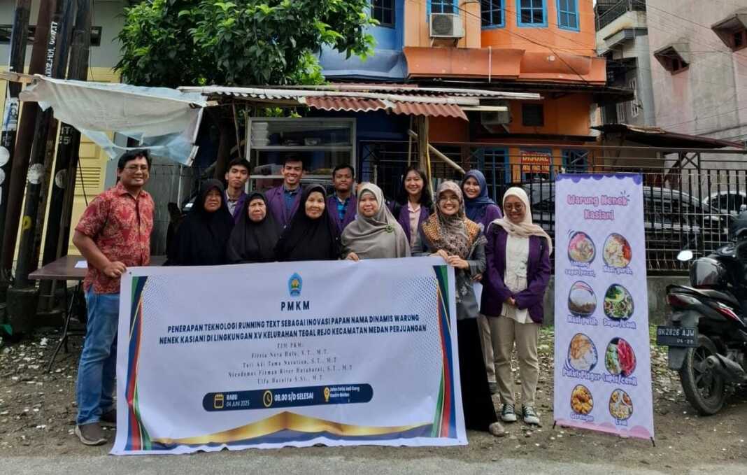 MEDAN, SUMUTPOS.CO- Politeknik Negeri Medan (Polmed) mengadakan program Pengabdian Mandiri kepada Masyarakat (PMKM) 2025 yang bertujuan untuk mensinergikan perkembangan teknologi terhadap kebutuhan masyarakat. Sebagai bentuk dukungan kegiatan UMKM, Tim PMKM melaksanakan kegiatan pengabdian di Warung Nenek Kasiani, Jalan Setia Jadi Lingkungan XV Kelurahan Tegal Rejo Kecamatan Medan Perjuangan, Rabu (4/6/2025) .