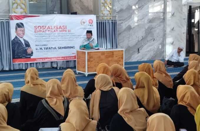 MEDAN, SUMUTPOS.CO- Anggota DPR/MPR RI Ir H Tifatul Sembiring mengajak masyarakat Kota Medan, khususnya ibu-ibu perwiritan, untuk selalu menjaga keutuhan Negara Kesatuan Republik Indonesia. Ajakan ini disampaikan Tifatul ketika menggelar Sosialisasi 4 Pilar MPR RI yang digelar di Medan, pada Kamis (31/7/2025).
