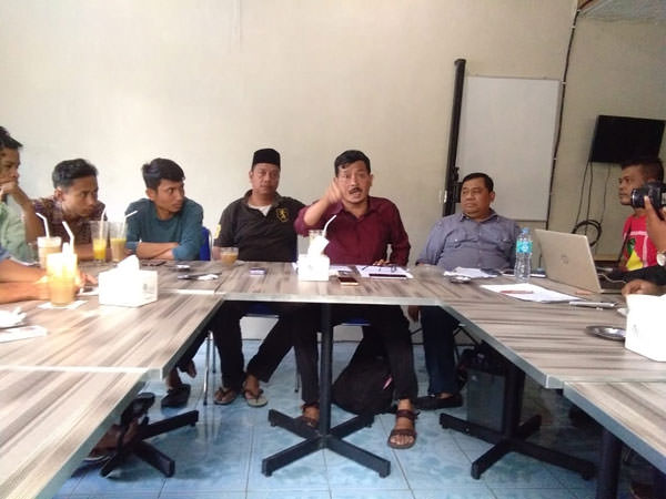 TEMU PERS: Koordinator Aksi Aliansi Rakyat Peduli Lingkungan Sumut, Indra Minka beri keterangan pers, Sabtu (9/2) sore.