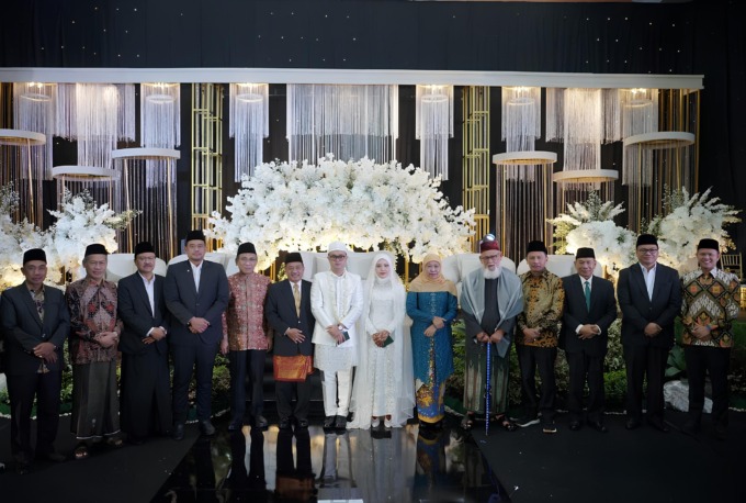 Hadir juga Gubernur Jawa Timur, Hj Khofifah Indar Parawansa yang turut berpesan kepada mempelai pria agar meniti jalan Nabi Muhammad SAW, yakni membawa bahtera keluarga yang kokoh dalam iman dan menggapai surga- Nya. “Semoga keduanya menjadi keluarga yang sakinah, mawaddah, dan warahmah,” harapnya.