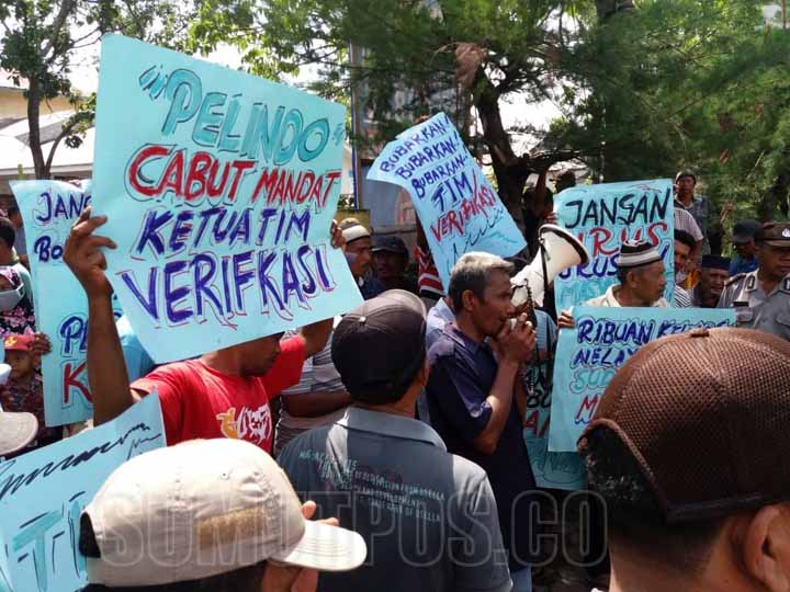 “Kami sudah bosan dibohongi, kami mau dana kompensasi segera direalisasikan. Kami minta Pelindo untuk mencabut mandat ketua tim verifikasi,” kata orator.