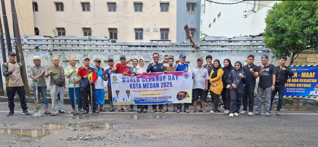 MEDAN, SUMUTPOS.CO- Dalam rangka mendukung World Cleanup Day 2025 (WCD) dan melaksanakan instruksi Wali Kota Medan Rico Tri Putra Bayu Waas, Kelurahan Sei Rengas 2 Medan Area, melaksanakan gotong-royong di Jalan Gandhi, Sabtu (20/9). Lurah Sei Rengas 2 Daniel Saut Saroha SSTP mengatakan, selain mendukung WCD dan instruksi Wali Kota, kegiatan gotong-royong yang difokuskan di Jalan Gandhi ini juga sesuai arahan Camat Medan Area Sutan Fauzi Arif Lubis SSTP MAP.