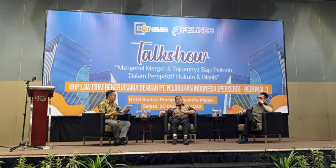 MEDAN, SUMUTPOS.CO – Merger atau penggabungan yang dilakukan Pelindo (PT Pelabuhan Indonesia -Persero) dibahas dalam perspektif hukum dan bisnis. Pembahasan tersebut dilakukan oleh DHP Law Firm bekerja sama dengan Pelindo Regional 1 dalam acara talkshow dengan tema, ‘Mengenal Merger dan Tujuannya Bagi Pelindo Dalam Perspektif Hukum & Bisnis’, yang digelar di Ballroom Hotel Santika Dyandra Medan, Selasa (20/12).