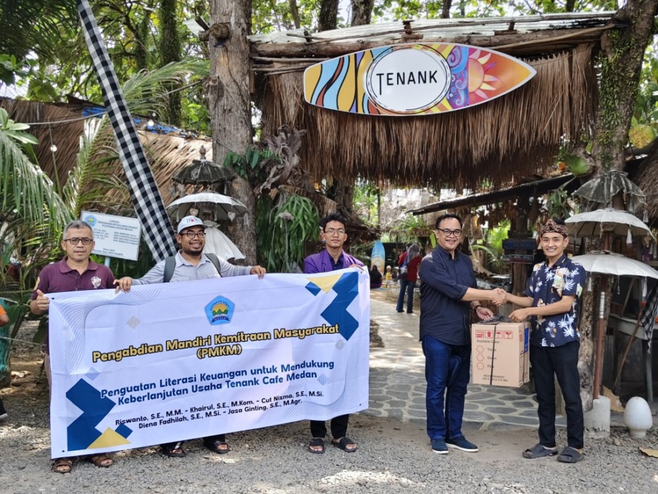 Kegiatan pertama mengusung tema “Penguatan Literasi Keuangan untuk Mendukung Keberlanjutan Usaha Tenank Cafe Medan”. Program ini dilaksanakan oleh Tim 1 yang terdiri dari Riswanto, S.E., M.M., Khairul, S.E., M.Kom., Cut Nizma, S.E., M.Si., Diena Fadhilah, S.E., M.Si., dan Jasa Ginting, S.E., M.Agr.