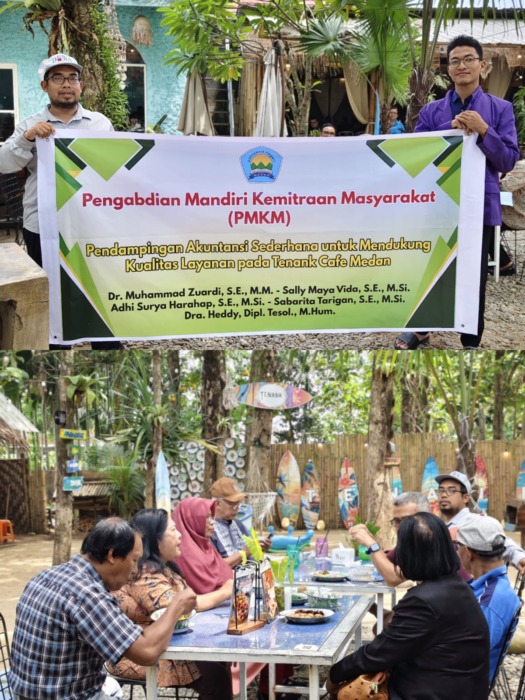 Sementara Tim 2, melaksanakan kegiatan bertajuk “Pendampingan Akuntansi Sederhana untuk Mendukung Kualitas Layanan pada Tenank Cafe Medan”. Tim ini terdiri dari Dr. Muhammad Zuardi, S.E., M.M., Sally Maya Vida, S.E., M.Si., Adhi Surya Harahap, S.E., M.Si., Sabarita Tarigan, S.E., M.Si., serta Dra. Heddy, Dipl. Tesol., M.Hum.