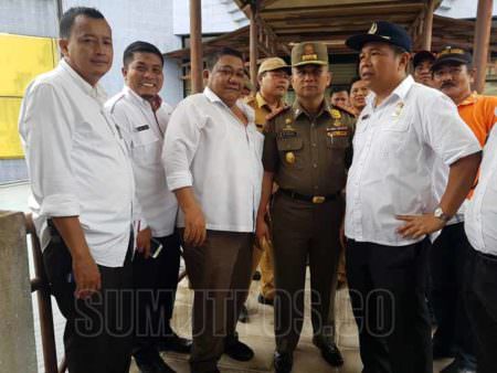 Dirut PD Pasar Rusdi Sinuraya bersama direksi dan Kasatpol PP Sofyan memantau Pasar Pringgan, Rabu (27/9).
