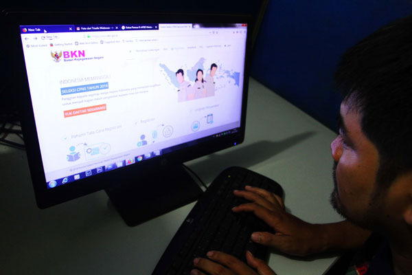 Triadi Wibowo/Sumut posBUKA SITUS: Seorang pria membuka situs SSCN untuk melihat hasil SKD, Rabu (28/11).