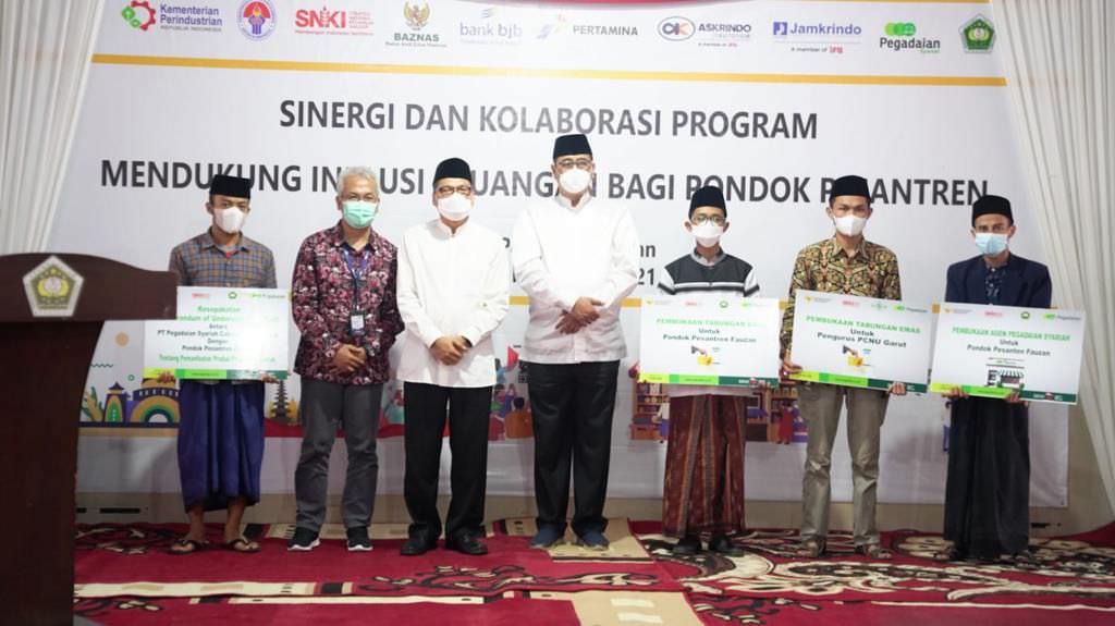 Pada kesempatan tersebut, implementasi strategi keuangan inklusif bagi Pondok Pesantren dilakukan melalui sinergi dan kolaborasi program serta dukungan dari berbagai stakeholder antara lain Program Pelatihan Santripreneur oleh Kementerian Perindustrian, Penyerahan Fasilitasi Pengembangan Kewirausahaan Pemuda di Kalangan Pesantren oleh Kementerian Pemuda dan Olahraga, Penyerahan Program Kita Jaga Kyai yang merupakan Program Satgasnas Covid-19 Badan Amil Zakat Nasional, Program Pemberdayaan Ekonomi Masyarakat Terpadu (PESAT) dan Penyaluran KUR oleh Bank Jawa Barat, Pemanfaatan Produk Pegadaian Syariah, serta Kerjasama Pertashop oleh Pertamina.