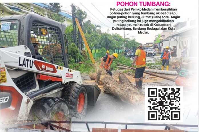 Dan di Kota Medan, dilaporkan satu rumah dan dua mobil tertimpa pohon MENURUT informasi yang diperoleh Sumut Pos, angin kencang yang disertai hujan deras itu melanda pemukiman warga di tiga kabupaten tersebut sekira pukul 16.00 WIB. Di Kabupaten Deliserdang, tepatnya di Dusun III Desa Amplas, Kecamatan Percut Seituan, sedikitnya 40 rumah rusak ringan dan rusak berat. “Rata-rata kerusakan itu di bagian atap. Ada yang sebagian, bahkan ada yang seluruh atapnya terbang akibat angin kencang,” kata Kepala Dusun III Desa Amplas, Ayub saat diwawancarai di lokasi kejadian.