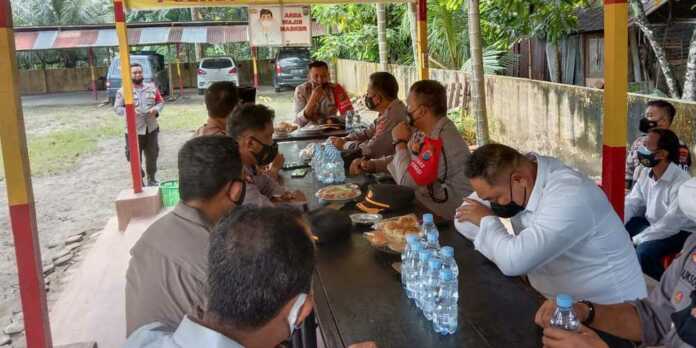SIPISPIS-Kapolres Tebingtinggi AKBP M Kunto Wibisono didampingi Kapolsek Sipispis AKP Saepullah Kabupaten Sergai melakukan tatap muka dengan para calon kepala desa (kades) yang akan melakukan pemeilihan kades di Kecamatan Sipispis Kabupaten Sergai. Kegiatan tatap muka dengan calon kades dilaksanakan di Taman Musyawarah Polsek Sipispis, Senin (24/1).