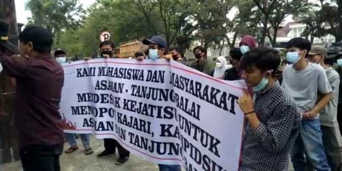ASAHAN, SUMUTPOS.CO – Puluhan massa mengatasnamakan Aliansi Keadilan Bersatu (AKB) meminta kepada Kejaksaan Tinggi Sumatera Utara (Kejati Sumut) segera mencopot Kejaksaan Negeri (Kajari) Tanjungbalai dan Asahan. Hal itu disampaikan massa saat unjuk rasa di Kantor Kejati Sumut Jalan AH Nasution, Medan, Kamis (20/1) siang.