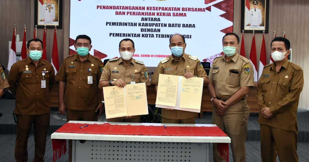 BATUBARA, SUMUTPOS.CO – Pemerintah Kabupaten Batubara dan Pemerintah Kota Madya Tebingtinggi melakukan Memorandum of Understanding (MoU) di Rumah Dinas Bupati, Komplek Perumahan Inalum Tanjung Gading, Kecamatan Sei Suka, Kabupaten Batu Bara, Senin (1/2).