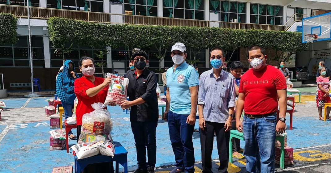 MEDAN, SUMUTPOS.CO-Jelang pelaksanaan Hari Raya Imlek 2572, Anggota DPRD Sumut dari Fraksi PDI Perjuangan Franky Partogi Wijaya bersama Bantuan Sosial Sepontan (BSS) Foundation yang diketuai Yap Seng Tat menyalurkan bantuan sosial (Bansos) Imlek di Lapangan Basket Sekolah Sultan Agung Jalan Surabaya, Pematangsiantar, Minggu (31/1/2021).