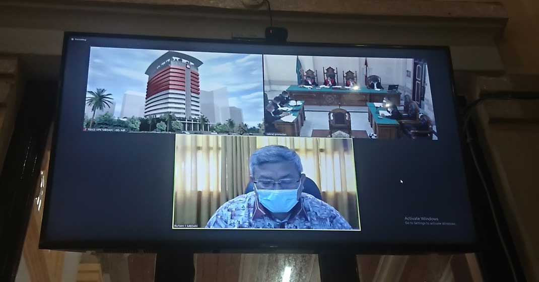 MEDAN, SUMUTPOS.CO – Bupati Labuhanbatu Utara (Labura) nonaktif Kharuddin Syah menjalani sidang dugaan suap di sidang virtual di Ruang Cakra 2 Pengadilan Tipikor Medan, Senin (1/2). Dia didakwa jaksa penuntut umum (JPU) Komisi Pemberantasan Korupsi (KPK) atas kasus suap Dana Alokasi Khusus Anggaran Pendapatan dan Belanja Negara Perubahan (DAK P-APBN) Pem kab Labura Tahun 2017-2018.