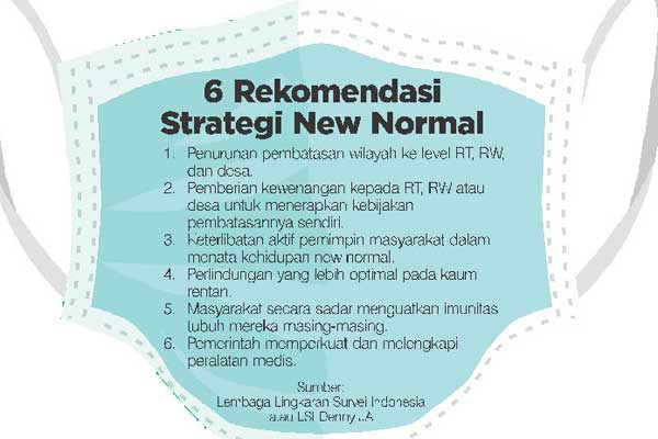 JAKARTA, SUMUTPOS.CO – Lembaga Lingkaran Survei Indonesia atau LSI Denny JA melakukan riset tentang strategi menghadapi new normal Covid-19. Hasilnya, ada enam strategi yang direkomendasikan LSI kepada para pemangku kepentingan untuk menyambut era new normal .
