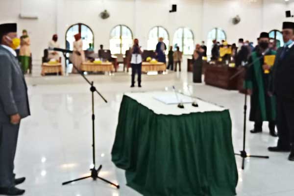 LANGKAT, SUMUTPOS.CO – Ketua DPRD Langkat, Surialam melantik dan mengambil sumpah Safi’i menjadi anggota DPRD menggantikan almarhum Jenda Kita Tarigan dalam sidang paripurna Pergantian Antar Waktu (PAW) masa jabatan 2019-2024 di ruang rapat Paripurna DPRD Langkat, Stabat, Jumat (5/6).