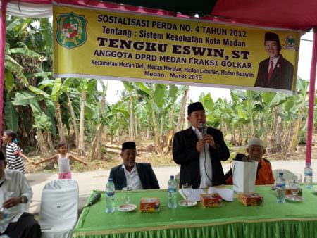 SOSIALISASI: Anggota DPRD Medan Tengku Eswin ST saat sosialisasi Perda Kota Medan tentang Sistem Kesehatan Kota di Labuhan Deli.
