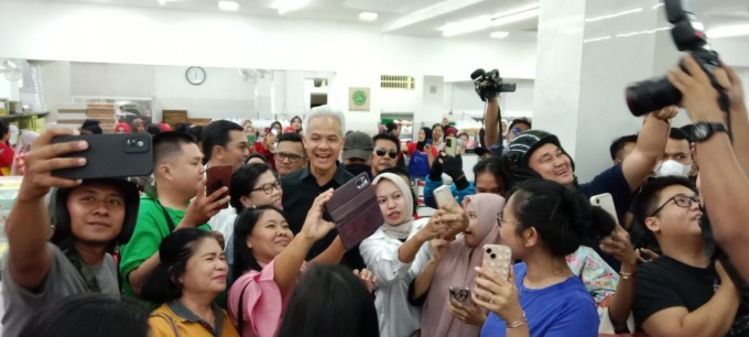 Saat Ganjar Pranowo tiba di Roti Ganda, ia langsung dikerumuni warga yang saat itu sedang belanja. Begitu juga para karyawan toko tidak tinggal diam. Mereka langsung mendekat untuk foto bersama.