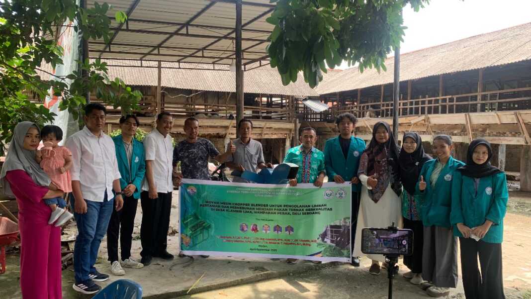 HAMPARAN PERAK, SUMUTPOS.CO— Sebuah inovasi teknologi tepat guna lahir dari kolaborasi dosen dan mahasiswa Universitas Negeri Medan (Unimed) dalam kegiatan Program Kemitraan Masyarakat (PKM) bertema “Inovasi Mesin Chopper Blender untuk Pengolahan Limbah Pertanian dan Perkebunan Menjadi Pakan Ternak Berkualitas.”
