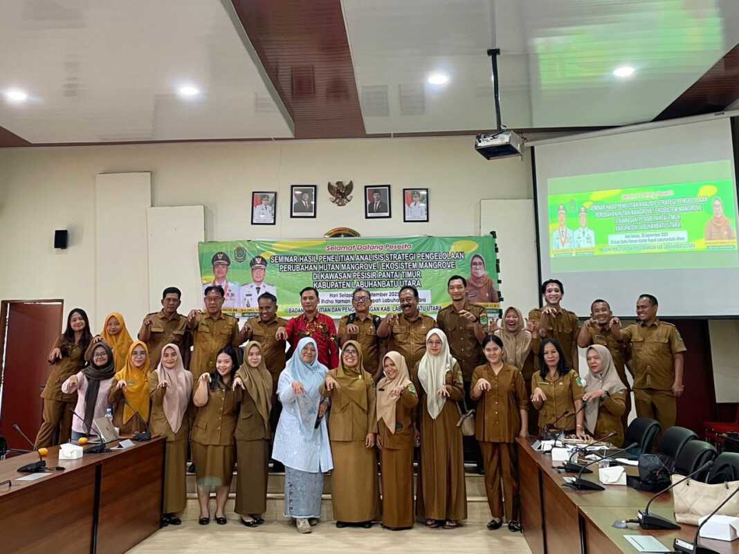 LABURA, SUMUTPOS.CO- Badan Penelitian dan Pengembangan (Balitbang) Pemrintah Kabupaten Labuhanbatu Utara melalui Bidang Pembangunan, Inovasi, dan Teknologi, melaksanakan rapat seminar terkait hasil penelitian analisis strategi pengelolaan perubahan hutan mangrove/ekosistem mangrove di Pesisir Pantai Timur Kabupaten Labuhanbatu Utara di Aula Ridho Yaman, Kantor Bupati Labuhanbatu Utara, Selasa (30/9/2025).
